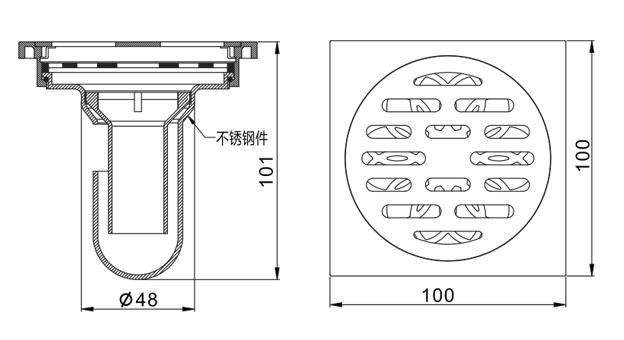 不銹鋼地漏內部設計專用拆洗開關,操作簡單,輕巧靈活,可重復拆洗,以防地漏污濁或堵塞,清潔方便