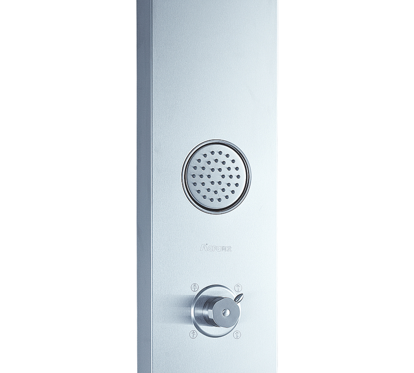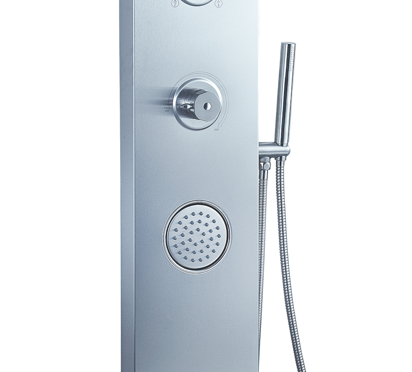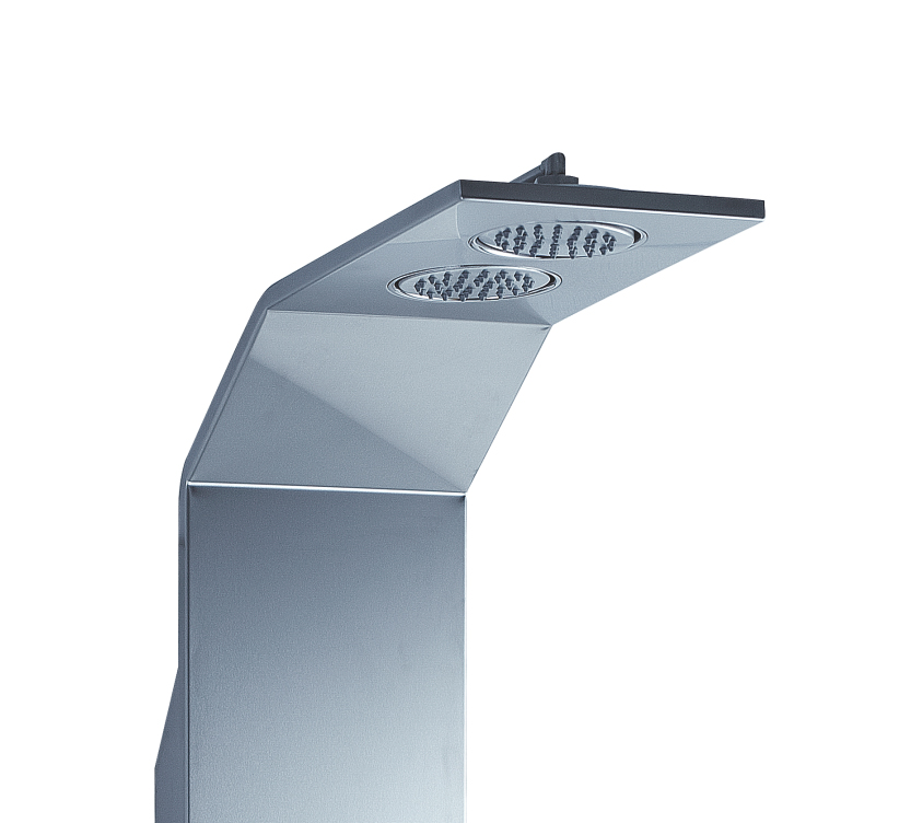 沐浴柱由不銹鋼整體壓鑄成型,簡潔時尚、結實耐用。上下呼應的斜角設計,讓您的浴室更具美感,又避免了金屬銳角對人體的意外碰撞,,彰顯人性關懷。