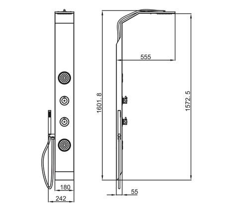 沐浴柱由不銹鋼整體壓鑄成型,簡潔時尚、結實耐用。上下呼應的斜角設計,讓您的浴室更具美感,又避免了金屬銳角對人體的意外碰撞,,彰顯人性關懷。