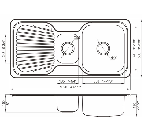 槽底采用斜面壓痕,四輻導(dǎo)流槽設(shè)計(jì),與平面壓痕和無(wú)痕水槽相比,導(dǎo)水更為流暢,下水更迅速,能有效防止積水,消除沉淀物