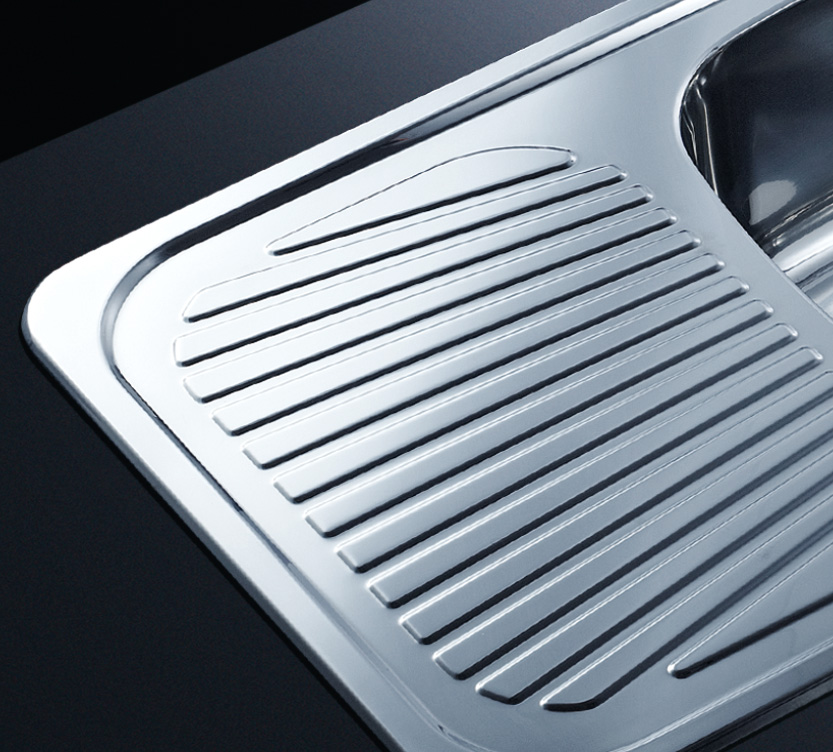 阿發水槽立邊采用國際先進的10-25°小R角一次成型拉伸技術,更具立體感與時尚潮流,亦能充分擴展水槽利用空間;一次成型拉伸技術,杜絕了焊接工藝易產生的水槽生銹,脫焊事故,充分保障水槽50年以上的使用壽命