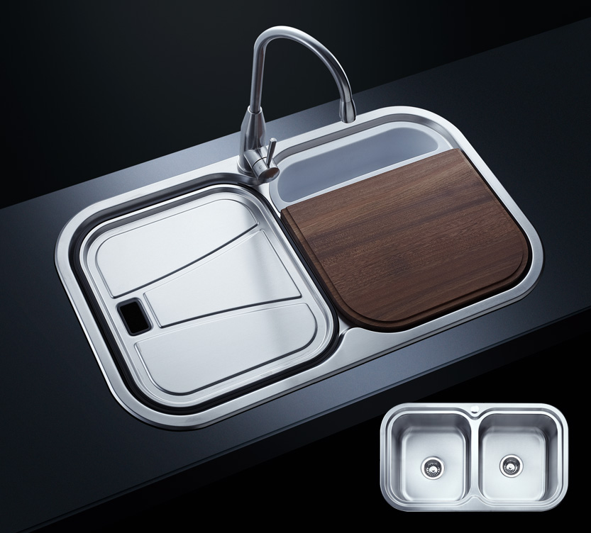 水槽四邊條采用一次成型的折彎加強筋工藝,雙倍堅固,承重力更強,解決了普通焊接工藝容易出現的凹點、脫焊、易割手等問題。專業配置的密封條和固定夾,安裝平整度高,不滲水,不松動