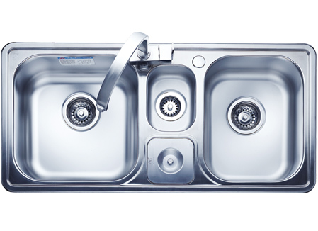 槽底采用斜面壓痕,四輻導流槽設計,與平面壓痕和無痕水槽相比,導水更為流暢,下水更迅速,能有效防止積水,消除沉淀物
