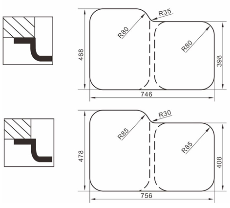 水槽四邊條采用一次成型的折彎加強筋工藝,雙倍堅固,承重力更強,解決了普通焊接工藝容易出現的凹點、脫焊、易割手等問題。專業配置的密封條和固定夾,安裝平整度高,不滲水,不松動