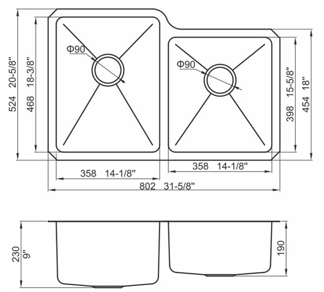 槽底采用斜面壓痕,四輻導流槽設計,與平面壓痕和無痕水槽相比,導水更為流暢,下水更迅速,能有效防止積水,消除沉淀物