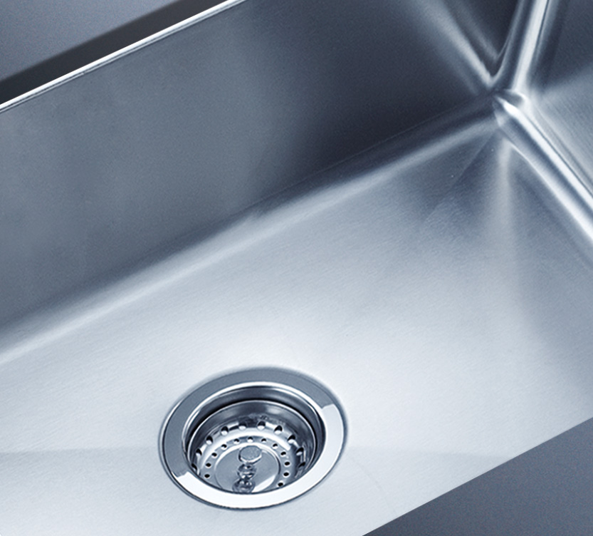 阿發水槽整體經拉絲處理,質地更加光滑,視覺更加柔和。能有效抵擋異物撞擊,刮傷及磨損,防止油污沾染,常用常新;柔和的光澤令水槽平添高雅氣質,更能避免鏡面材質反射的光污染