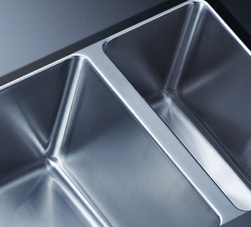 阿發水槽立邊采用國際先進的10-25°小R角一次成型拉伸技術,更具立體感與時尚潮流,亦能充分擴展水槽利用空間;一次成型拉伸技術,杜絕了焊接工藝易產生的水槽生銹,脫焊事故,充分保障水槽50年以上的使用壽命