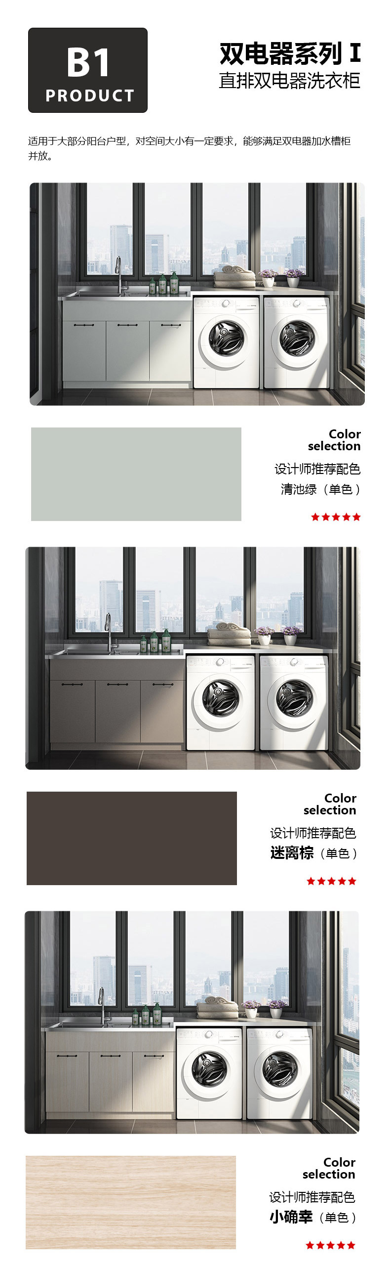 B1-橫排雙電器(不銹鋼陽臺洗衣柜)